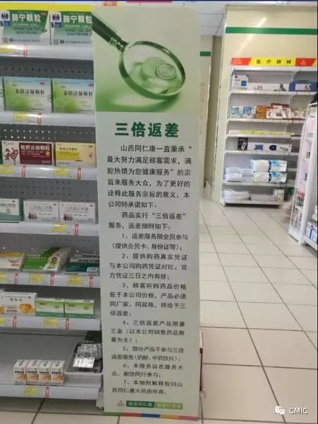25年來,持續(xù)以專業(yè)精神,全心全意為老百姓服務(wù),做讓老百姓值得信賴的大藥房,做老百姓可以得到惠顧的大藥房,無不體現(xiàn)山西同仁康大藥房連鎖有限公司便民、惠民的治企理念。******發(fā)改委于2015年6月1日取消了藥品定價(jià),同仁康經(jīng)營4500余種藥品絕大多數(shù)低于市場價(jià),難免有個(gè)別產(chǎn)品沒有來得及調(diào)整可能高于市場價(jià)。近期個(gè)別有心人通過微信平臺(tái)對(duì)我們進(jìn)行了有力監(jiān)督,我們表示衷心感謝。歡迎社會(huì)各界持續(xù)對(duì)我們監(jiān)督,幫助我們及時(shí)改進(jìn)。您的監(jiān)督是我們努力的方向,更是我們前進(jìn)的動(dòng)力!同仁康將適時(shí)兌現(xiàn)我們一貫的三倍返差承諾,即:如果發(fā)現(xiàn)同仁康大藥房的售價(jià)高于同行業(yè)價(jià)格的情況,消費(fèi)者可憑消費(fèi)憑證到您身邊的同仁康大藥房領(lǐng)取高出部分的三倍價(jià)差補(bǔ)貼。堅(jiān)持了25年同等質(zhì)量比價(jià)格,同等價(jià)格比服務(wù)的經(jīng)營宗旨,永遠(yuǎn)不會(huì)改變。